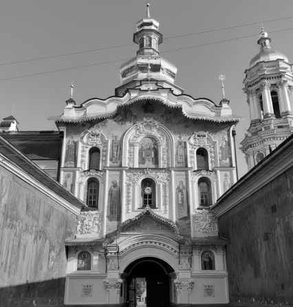 Built between 1106 and 1108, the Trinity Gate Church crowns the main entrance to the Kyiv Pechersk Lavra. A rare example of early Rus and Baroque architecture, it features frescoes and stucco from several centuries, symbolising the spiritual and artistic heritage of Ukraine.